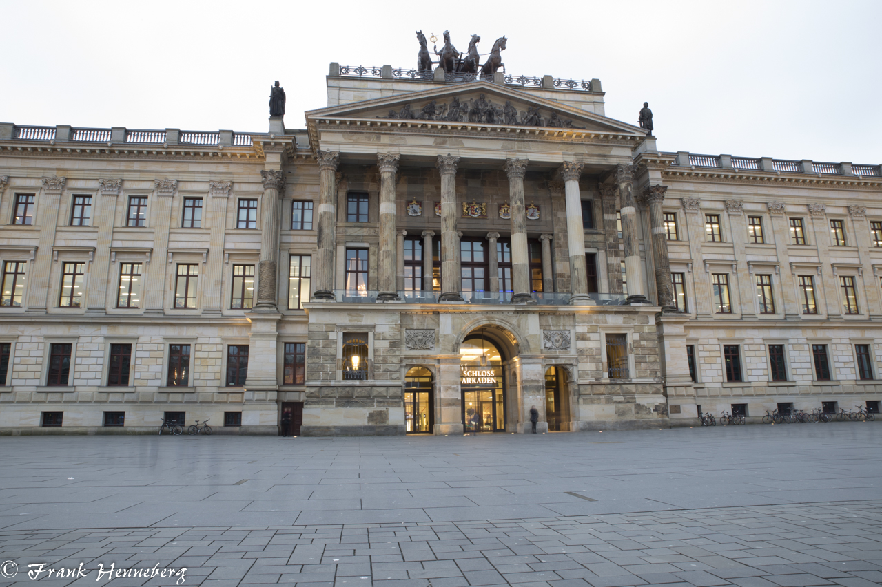 Die Braunschweiger Schloss Arkaden am Nachmittag mit Langzeitbelichtung und einem ND Filter fotografiert.