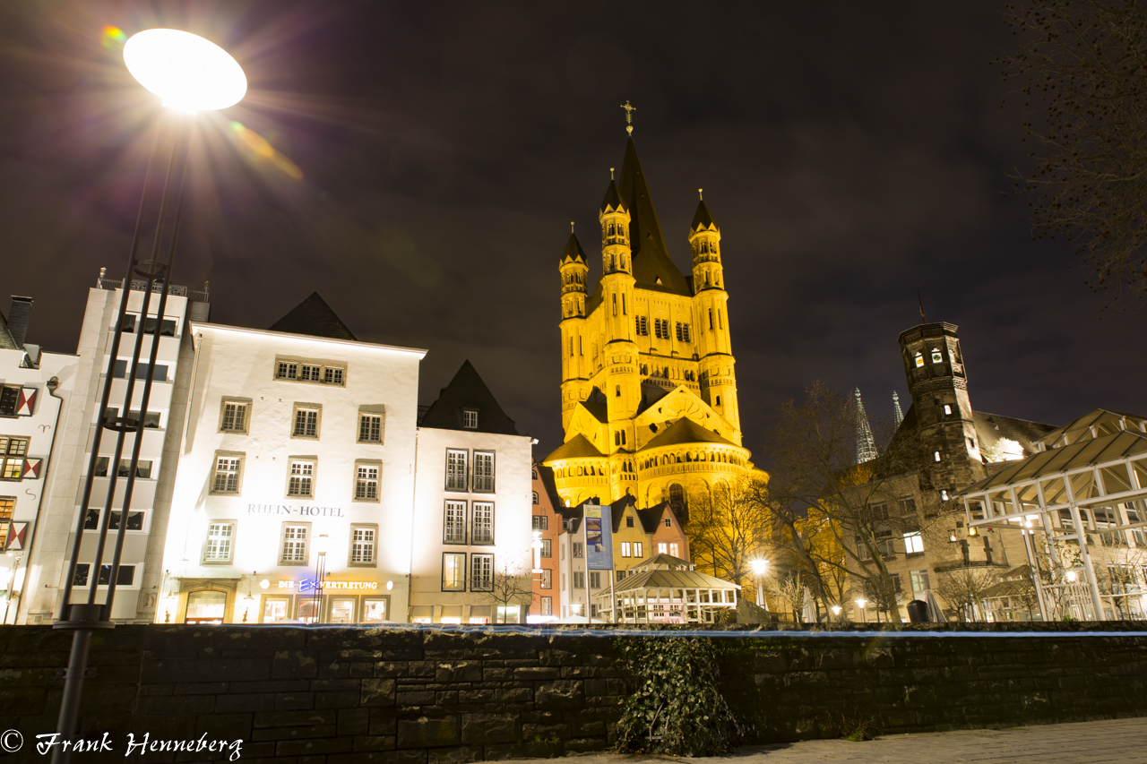 Die Kölner Altstadt am Rheinufer.