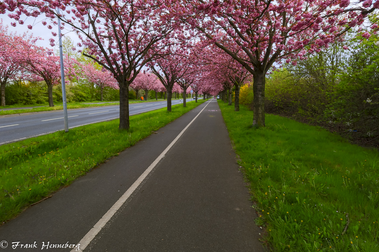 Entlang der Straße bieten die Bäume im Frühjahr ein wunderschönes Bild.