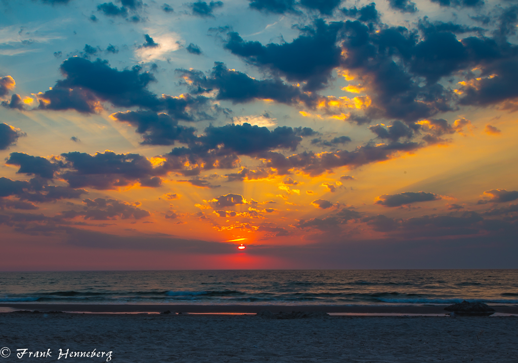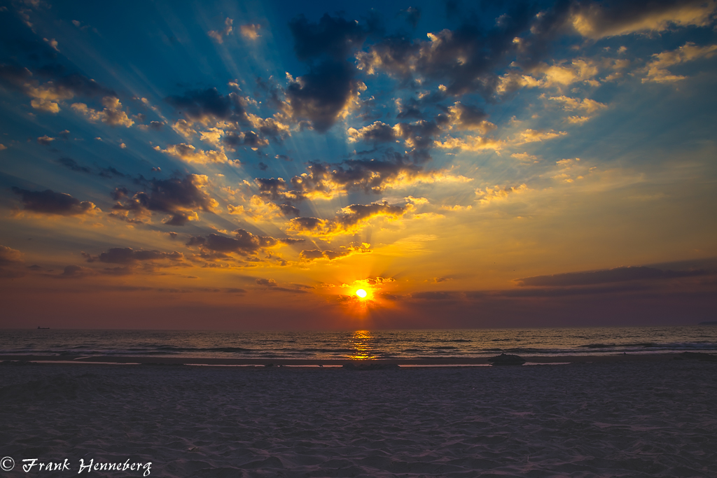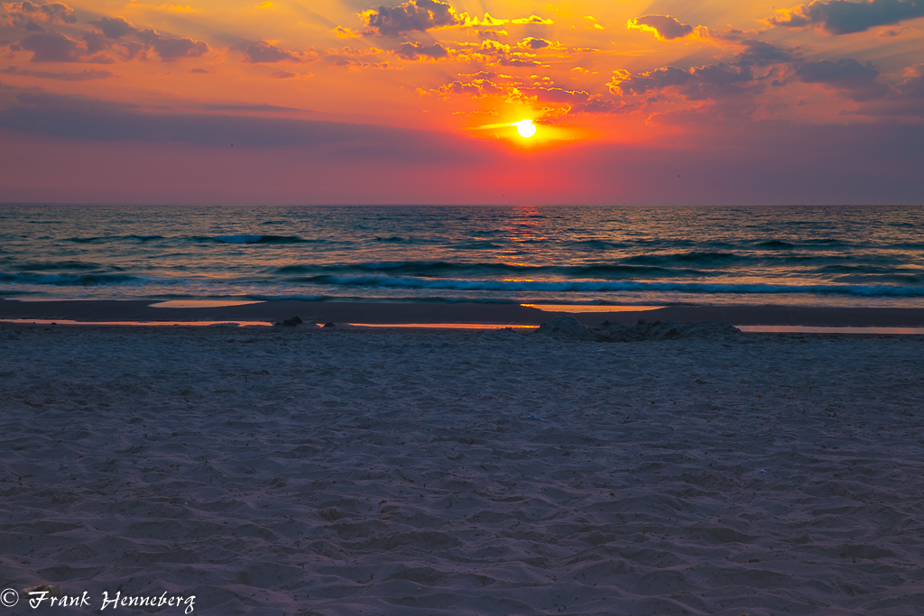 Die Fotografien vom Morgenrot wurden mit verschiedenen Einstellungen fotografiert und bilden somit sehr unterschiedliche Farbenspiele. Weitere Fotografien zum Sonnenaufgang mit Morgenrot am Meer findet Ihr in unserer Fotogalerie.
