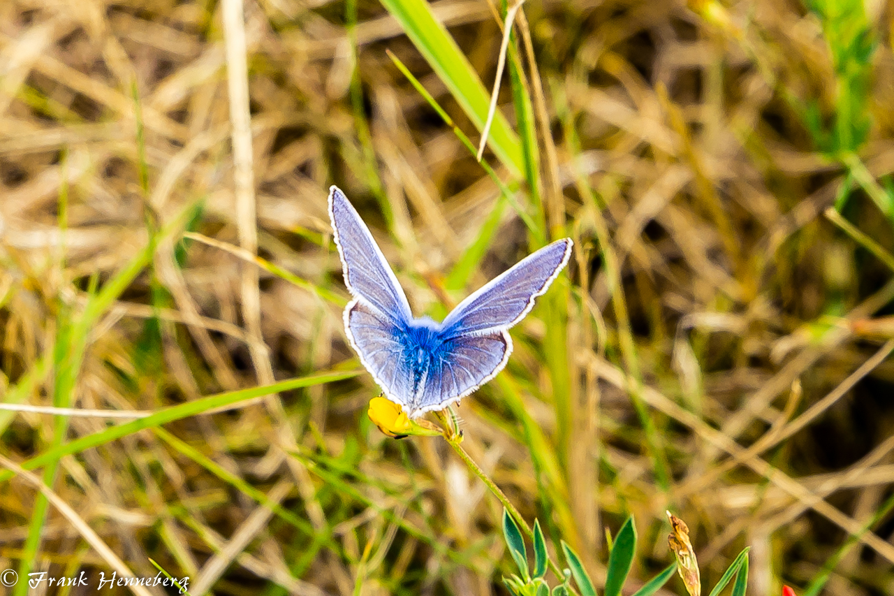 Unterwegs haben wir diesen Falter am Wegesrand entdeckt. Dieser ist sehr klein und schwer zu fotografieren. Der kleine blaue Schmetterling ist vermutlich der Himmelblaue Bläuling.
