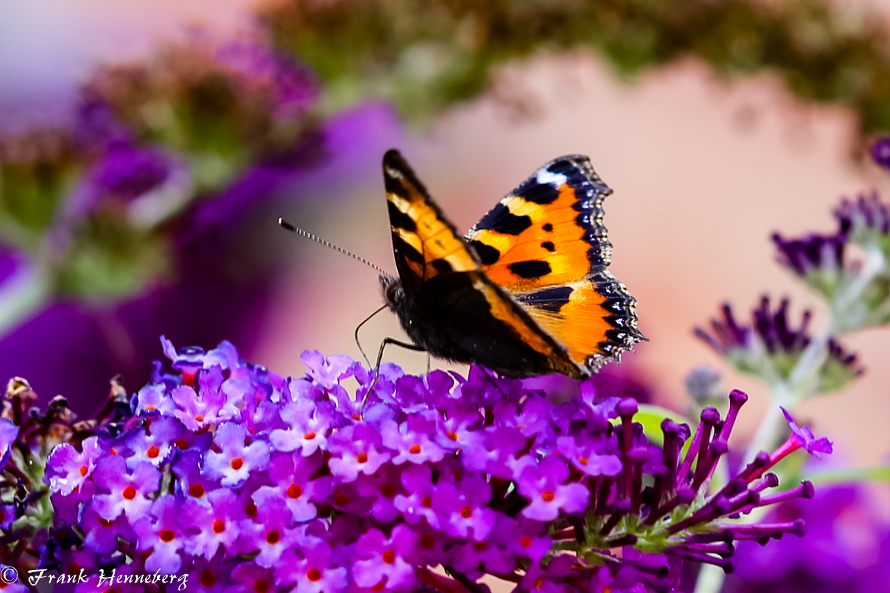 Der Schmetterling kleiner Fuchs am Schmetterlingsflieder.