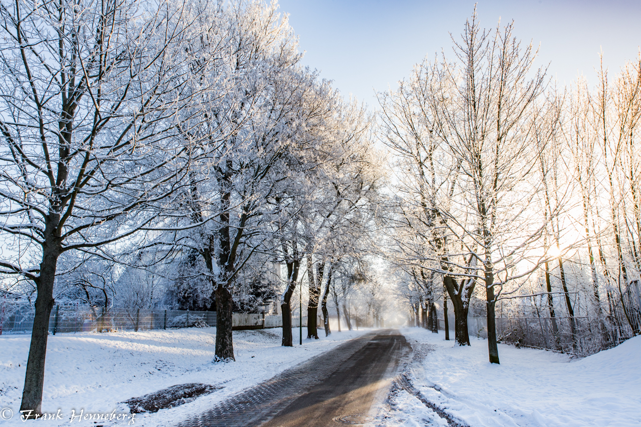 Schöningen im Winter, entlang der Hötensleber Straße.
