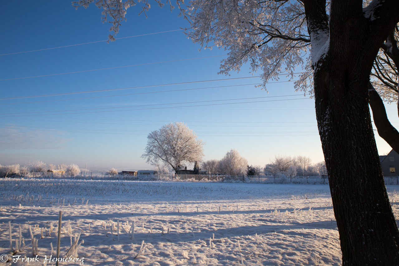 Da ein sehr klarer, sonniger und auch kalter Tag war habe ich mich auf den Weg gemacht einige Winterfotos rund um die Stadt Schöningen zu machen. Dabei habe ich am Vormittag mit der Vollformat Kamera Canon EOS 6D, mit dem 24-70mm Objektiv von Tamron fotografiert und am Nachmittag war ich mit der Canon EOS 70D (APS-C Kamera) und ebenfalls dem 24-70mm Objektiv von Tamron unterwegs.