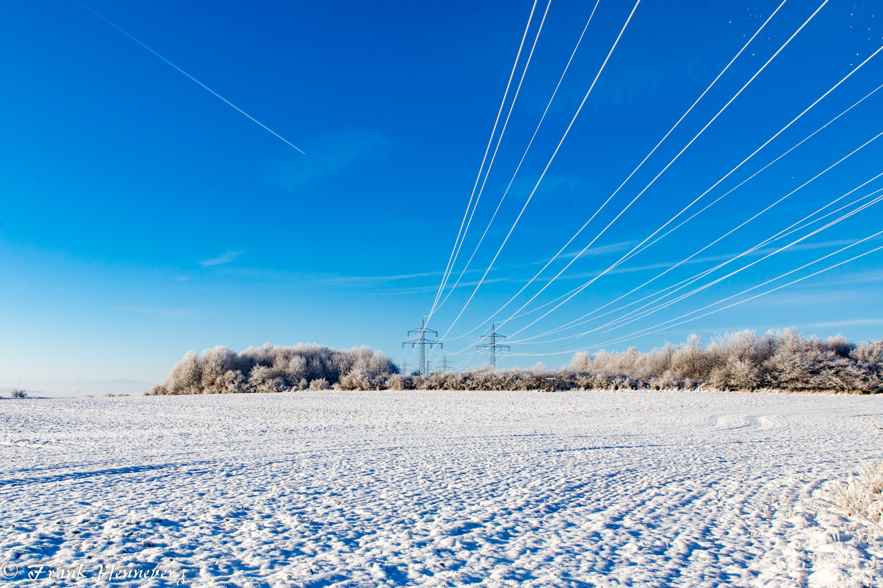 Entlang der Straße von Hötensleben nach Schöningen ist mir dieses Motiv mit der gefrorenen Hochspannungsleitung sehr ins Auge gefallen.