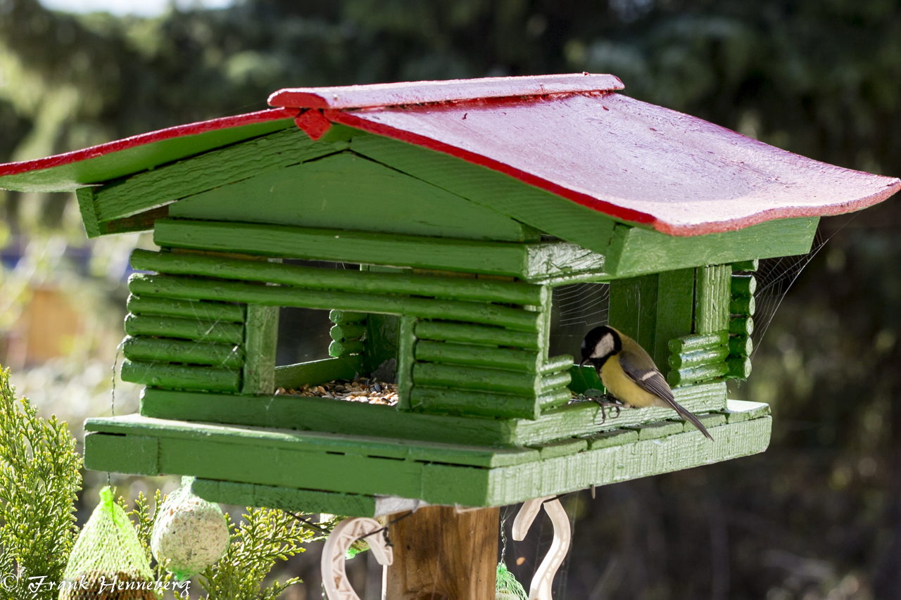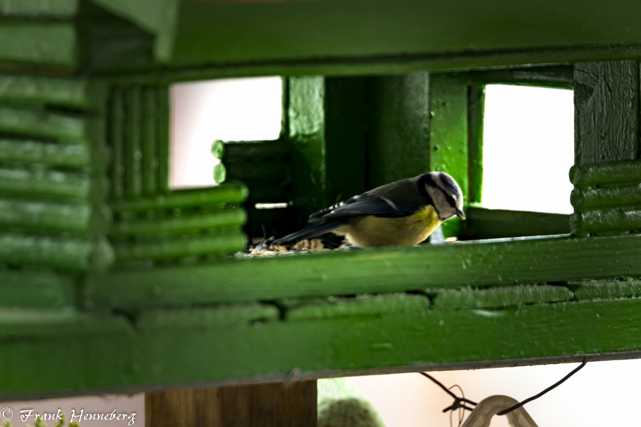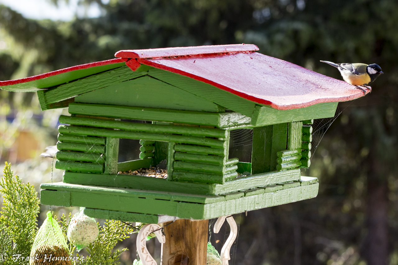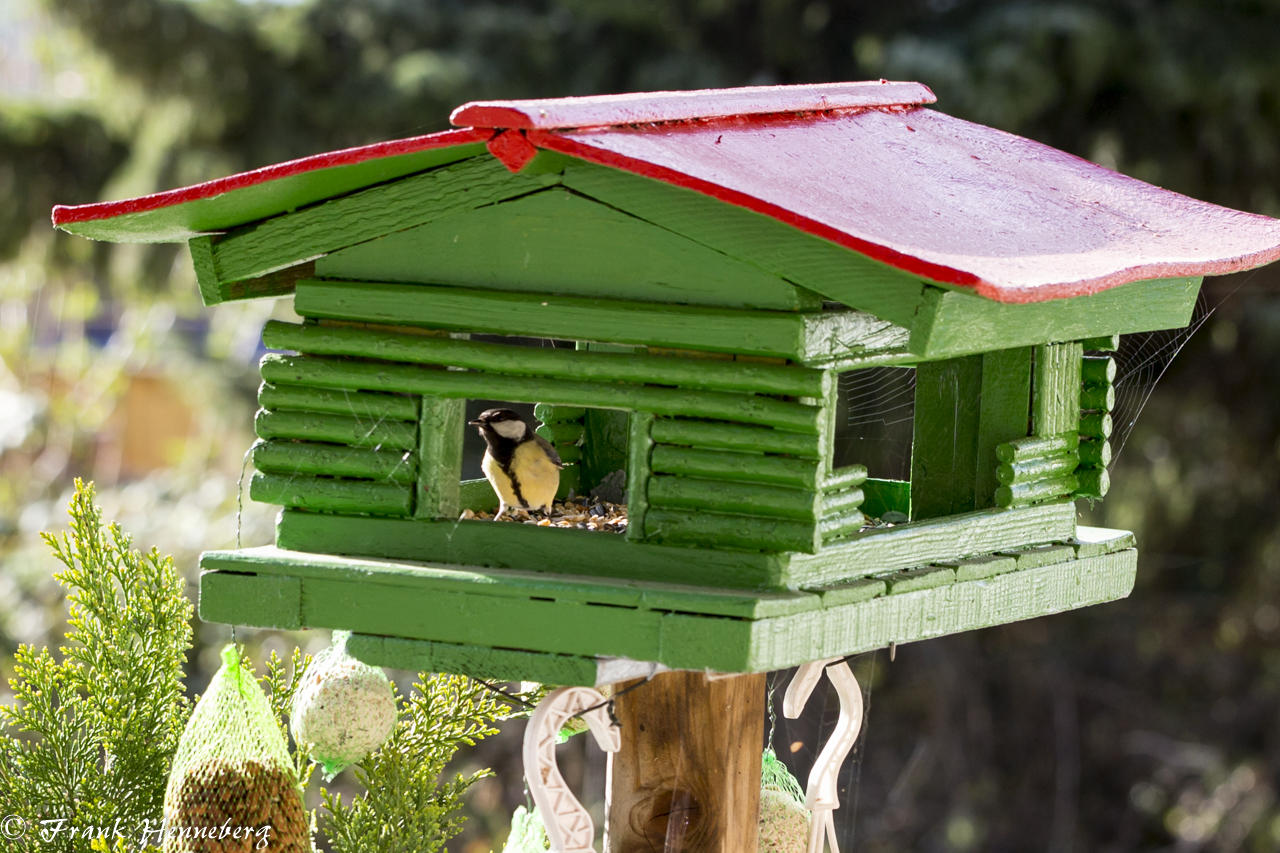 Die Meise im Vogelhäuschen ist ein Bildausschnitt.